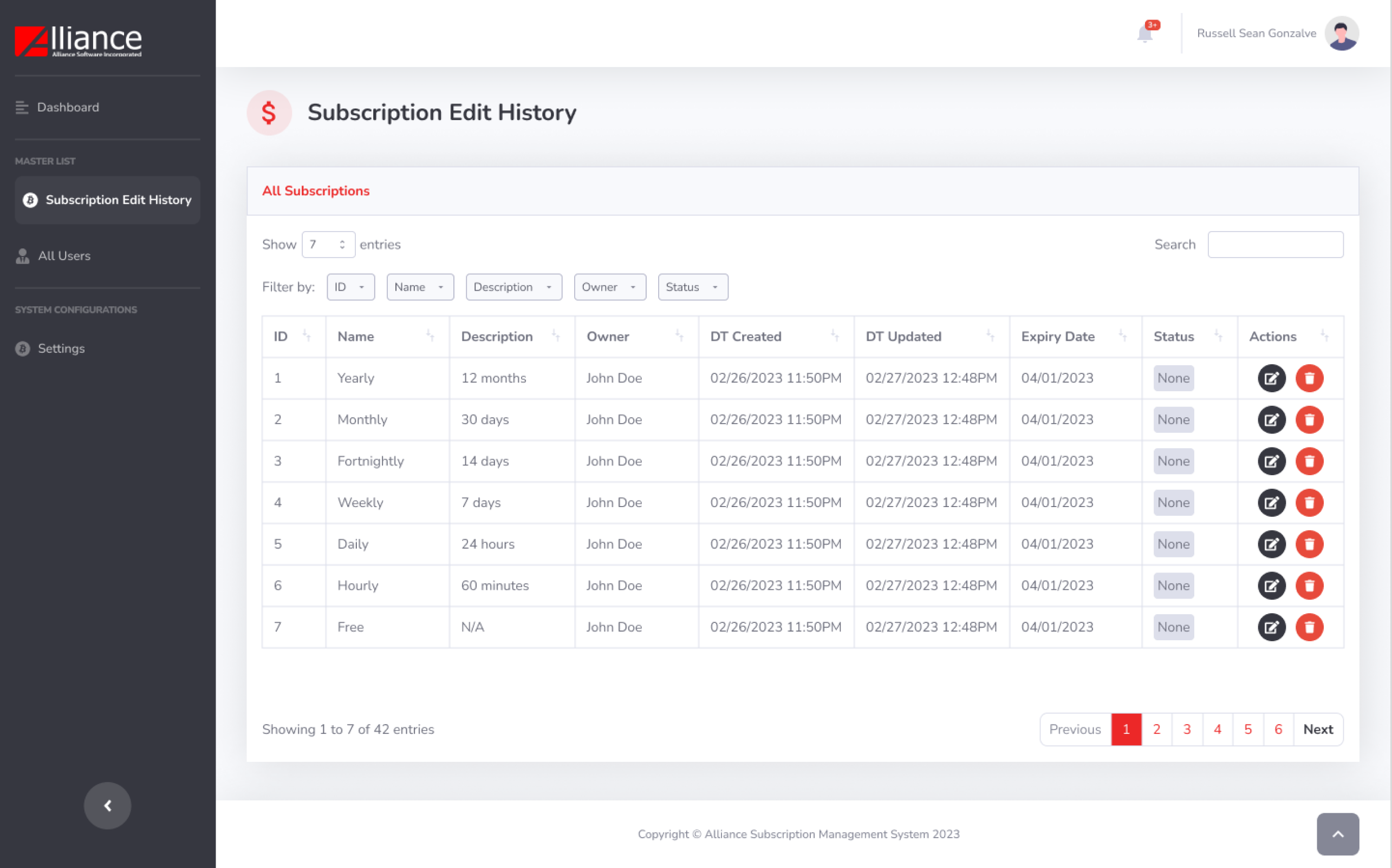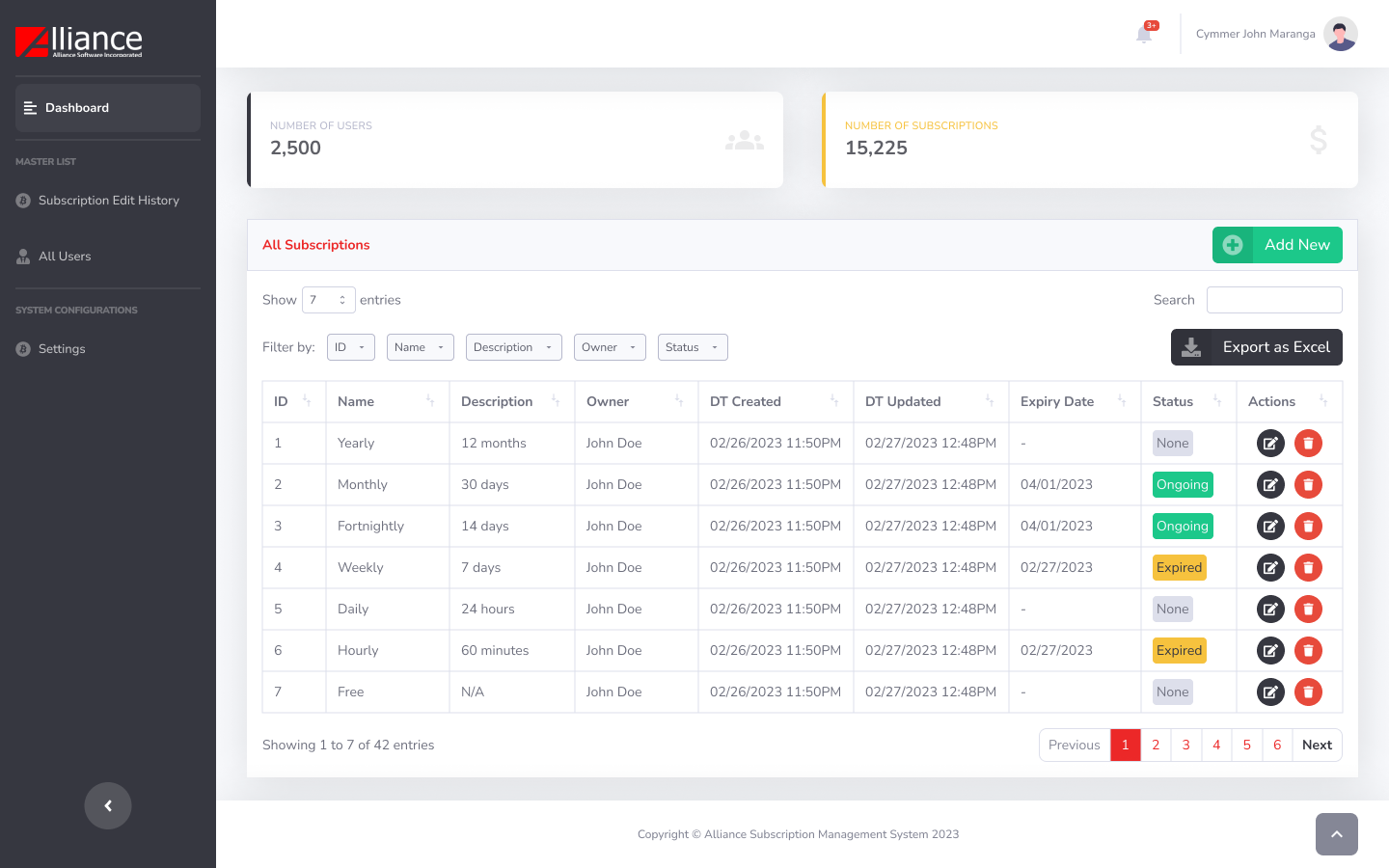 Alliance Subscription Monitoring